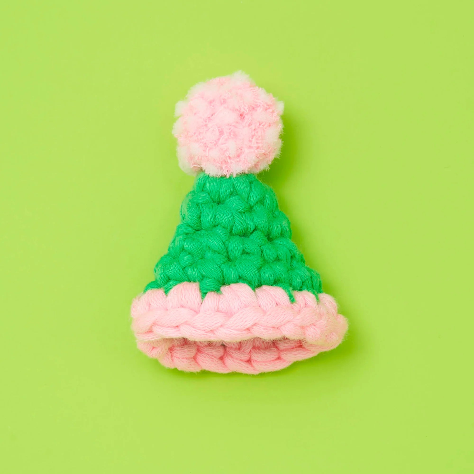 With this learn-to-crochet kit, you'll learn how to crochet - surprise! - flat things. That's right, this conical hat is actually made in rows. You'll also learn how to use a fork to craft a pom-pom.